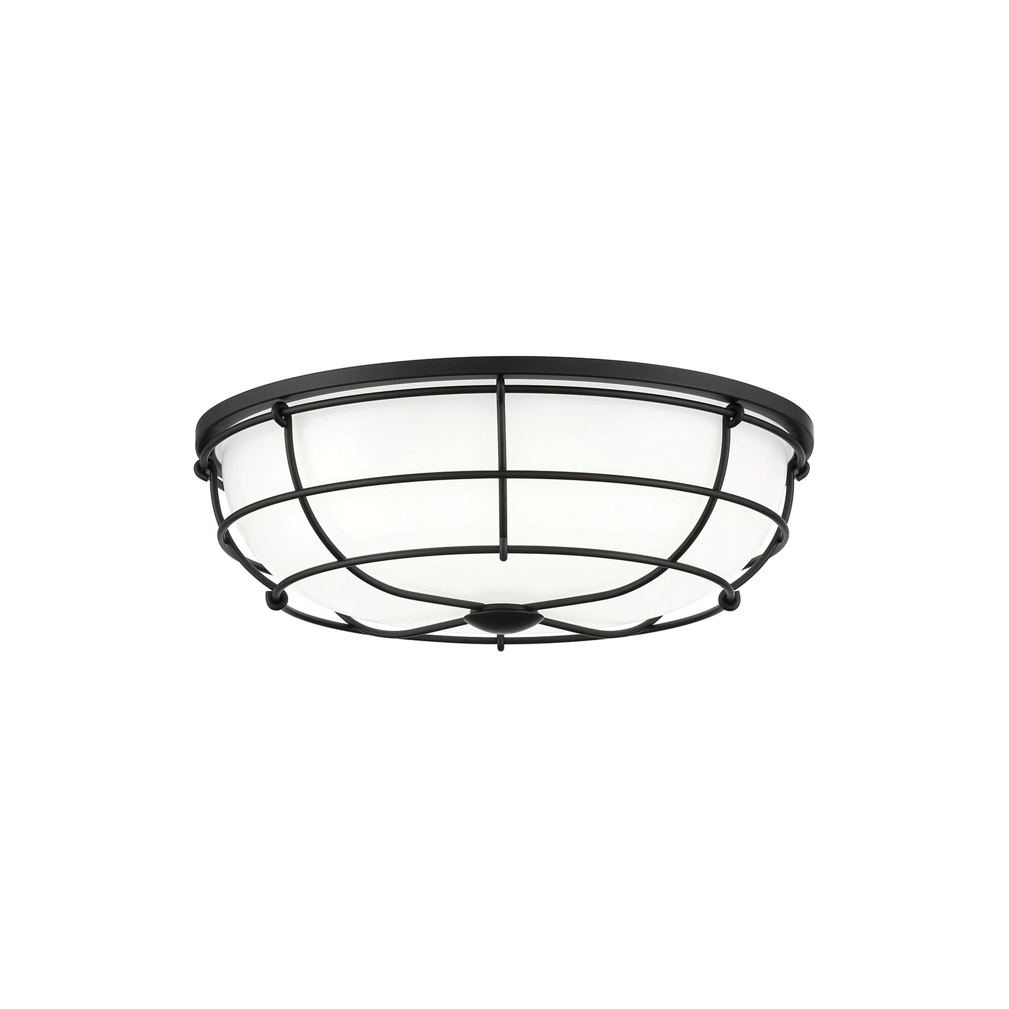 • Modern 16 in. round LED flush mount in matte black finish